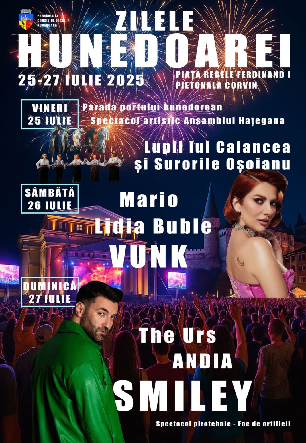 ๐ŸŽ‰ Vฤƒ invitฤƒm sฤƒ sฤƒrbฤƒtorim รฎmpreunฤƒ oraศ™ul nostru! Timp de trei zile, #Hunedoara vibreazฤƒ de energie, muzicฤƒ, tradiศ›ie ศ™i emoศ›ie. De la porศ›ile deschise ale Castelului Corvinilor pรขnฤƒ la spectacole live cu artiศ™ti consacraศ›i, รฎn Piaลฃa Regele Ferdinand I, de la parade ศ™i folclor autentic la momente dedicate culturii locale โ€“ Zilele Hunedoarei 2025 se anunศ›ฤƒ un eveniment de neratat!