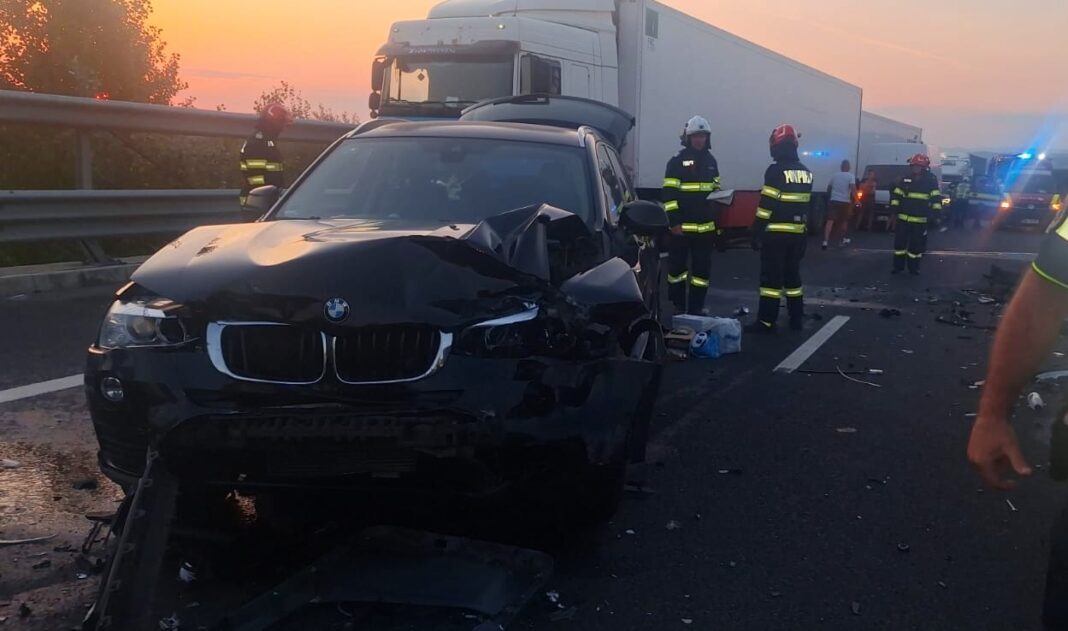 În această dimineață, pe autostrada A1 pe sensul de mers Orăștie – Simeria, o autoutilitară condusă de un șofer din Bulgaria a intrat într-un TIR, după care a fost proiectată pe banda a doua, unde a fost lovită de alte două autoturisme. În urma ciocnirilor în lanț, 6 persoane, printre care și doi copii au ajuns la Spitalul Județean de Urgență Deva, după ce au primit îngrijiri medicale.