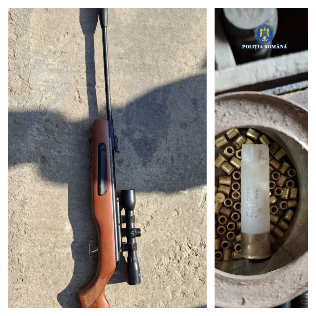 …două arme letale lungi de vânătoare confecționate artizanal, o armă neletală cu aer comprimat, o țeavă de armă letală de calibru 20, cu seria ștearsă, peste 190 de cartușe letale de diferite calibre, 12 cartușe fără proiectil și 432 capse. De asemenea, au fost ridicate cantități semnificative de componente și materiale pentru confecționarea muniției, două recipiente cu praf de pușcă, o cameră cu termoviziune și două lanterne, un articol pirotehnic din categoria P1 și mai multe trofee de vânătoare, inclusiv un trofeu de cerb, șase de căprior și patru de mistreț.