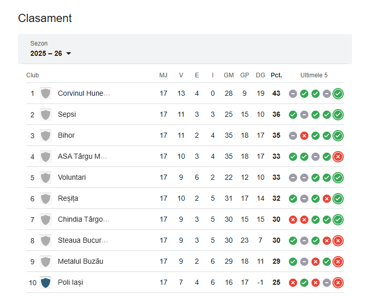 CORVINUL HUNEDOARA A FĂCUT NORMA DE TREI GOLURI ACASĂ ÎN PARTIDA CU C.S. TUNARI, ÎN ULTIMUL MECI OFICIAL AL ANULUI 2025