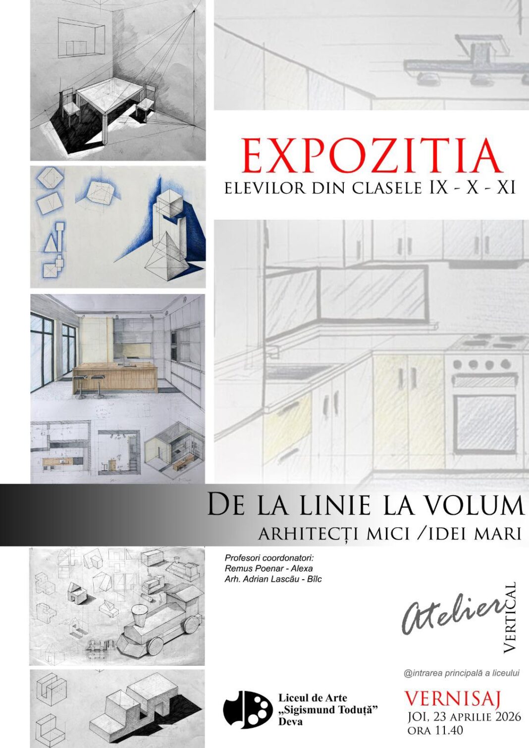 Elevii claselor IX–XI de la Liceul de Arte „Sigismund Toduță” din Deva vă invită să descoperiți o expoziție care transformă schița în formă și imaginația în spațiu.