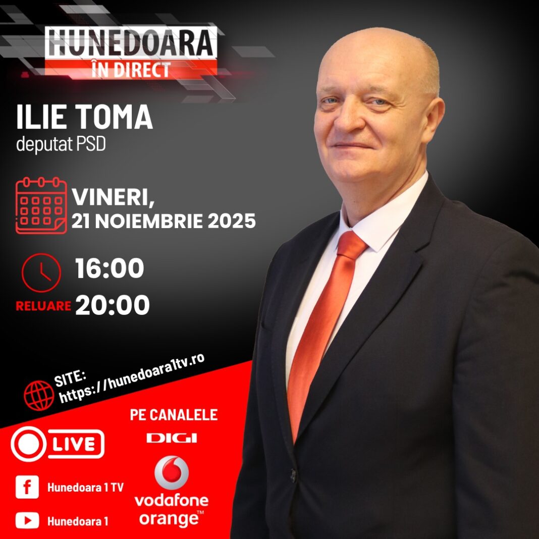 ILIE TOMA, deputat PSD la „HUNEDOARA ÎN DIRECT”, ASTĂZI, 21 NOIEMBRIE 2025, de la ora 16:00 și în reluare de la ora 20:00, moderator Nicolle EBNER.