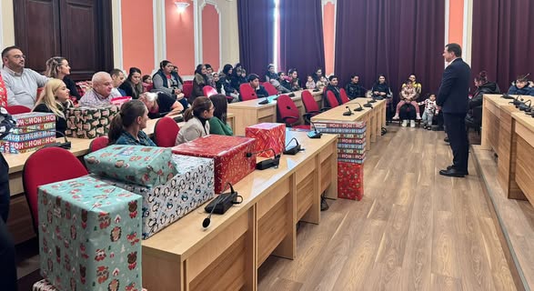Peste 30 de copii, cu vârste între 5 – 12 ani, care provin din familii defavorizate din municipiul Deva, au primit, vineri, 21 noiembrie 2025, pachete cu jucării și dulciuri, dar și cu îmbrăcăminte și încălțăminte pentru sezonul rece, oferite de angajați ai Primăriei Municipiului Deva. Banii pentru achiziționarea bunurilor provin din donații ale reprezentanților administrației publice locale. Pachetele au fost dăruite copiilor în sala de ședințe a Primăriei Municipiului Deva, în prezența conducerii instituției.