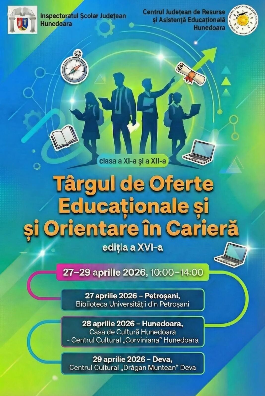 36 DE UNIVERSITĂȚI ȘI ȘCOLI POSTLICEALE DIN ÎNTREAGA ȚARĂ ÎȘI VOR PREZENTA OFERTELE LA DEVA, HUNEDOARA ȘI PETROȘANI