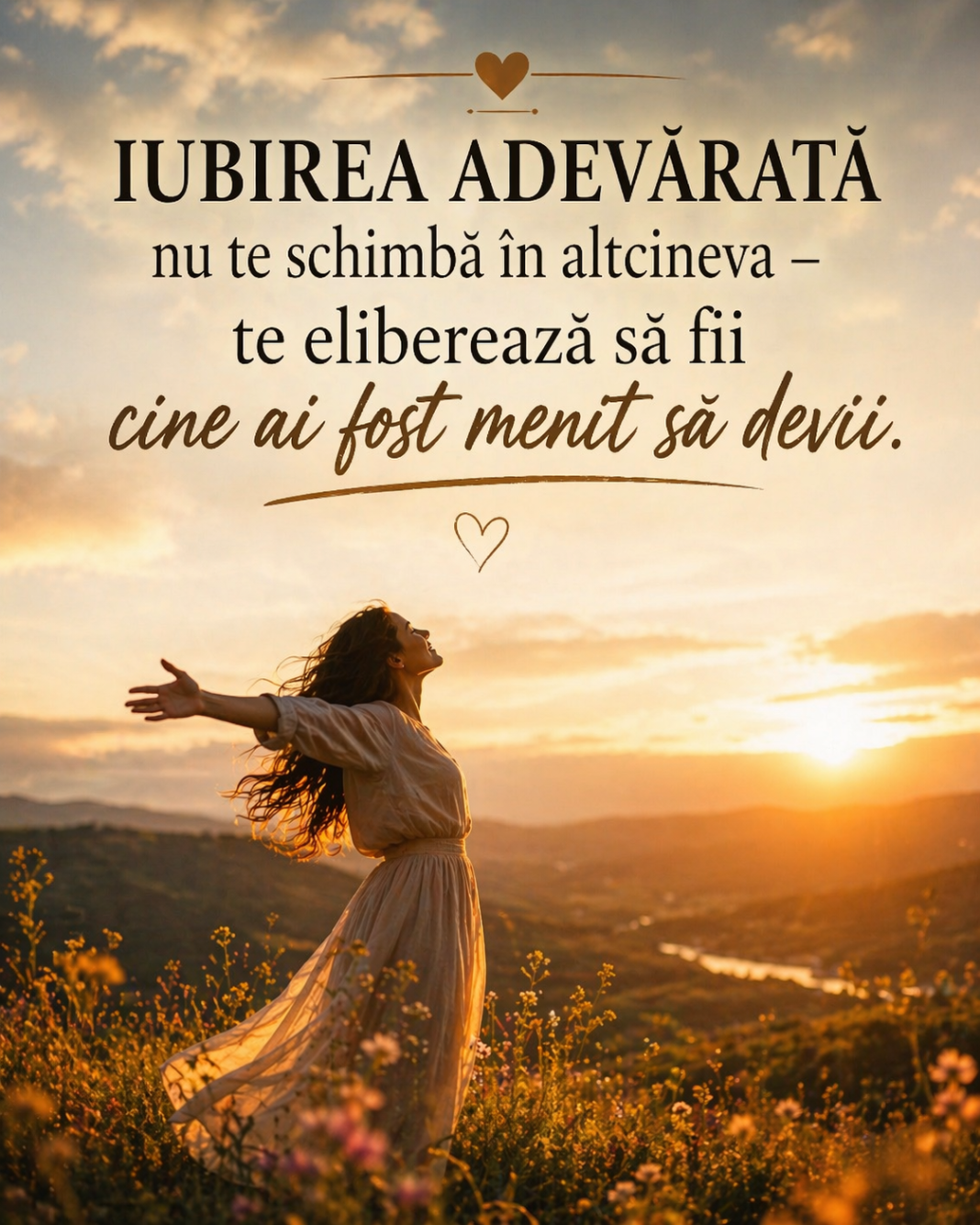 „Iubirea adevărată nu te schimbă în altcineva — te eliberează să fii cine ai fost menit să devii.”