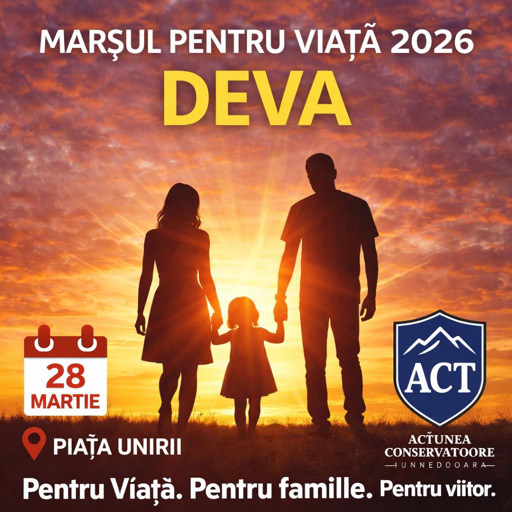 Acesta nu este doar un marș. Este un moment în care alegem să fim împreună. Să arătăm că ne pasă. Că nu suntem singuri. Că există o comunitate puternică de oameni care cred în aceleași lucruri simple și esențiale: viață, familie, normalitate.Vă invităm pe toți cei care simțiți la fel să ni se alăture. Nu pentru un partid. Nu pentru o ideologie. Ci pentru ceea ce contează cu adevărat. Pentru viață. Pentru familie. Pentru viitor.” Au declarant cei de la Acțiunea Conservatoare Hunedoara
