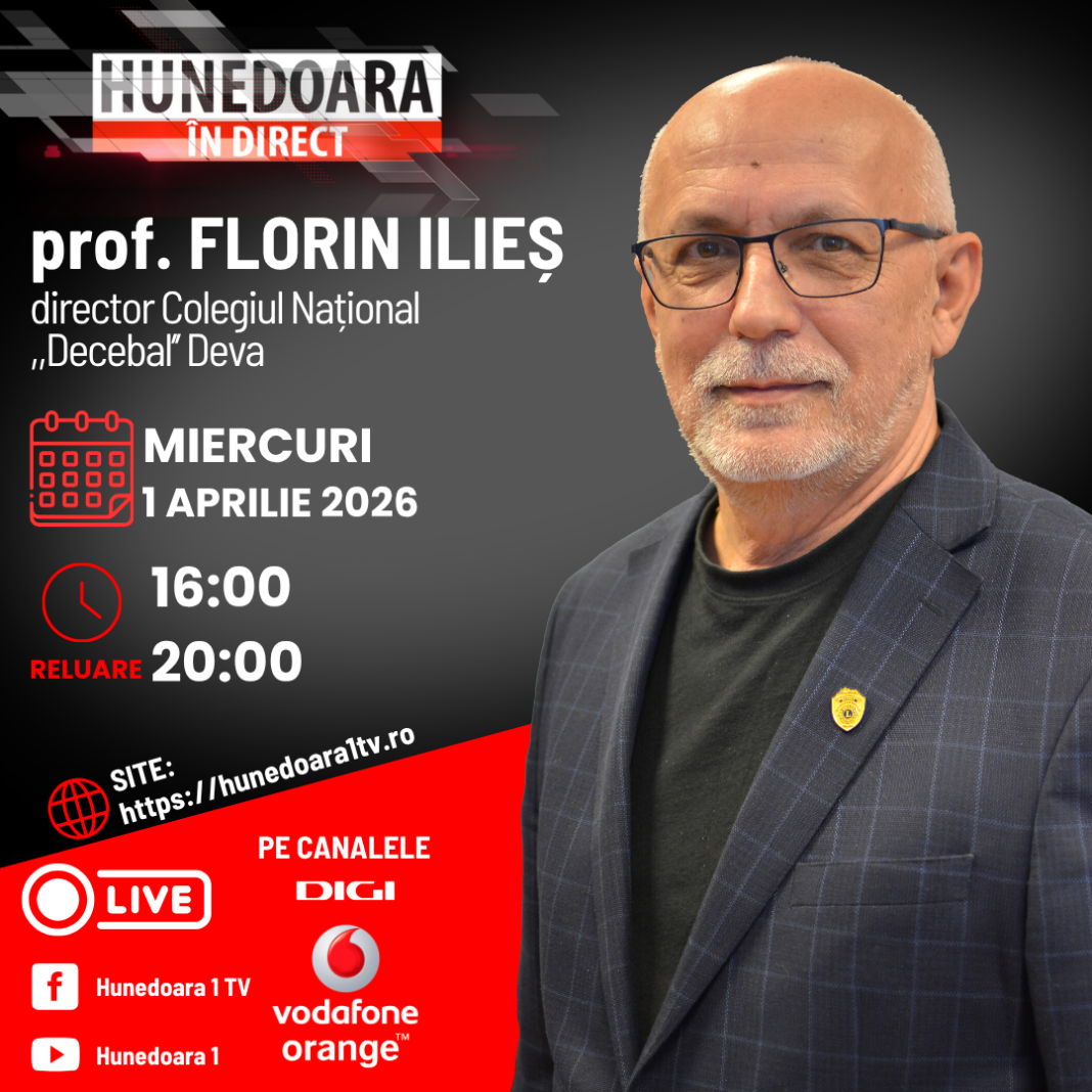 prof. FLORIN ILIEȘ, director Colegiul Național ,,Decebal’’ Deva la „HUNEDOARA ÎN DIRECT”, ASTĂZI, 1 APRILIE 2026, de la ora 16:00 și în reluare de la ora 20:00, moderator Petronela Tămaș.