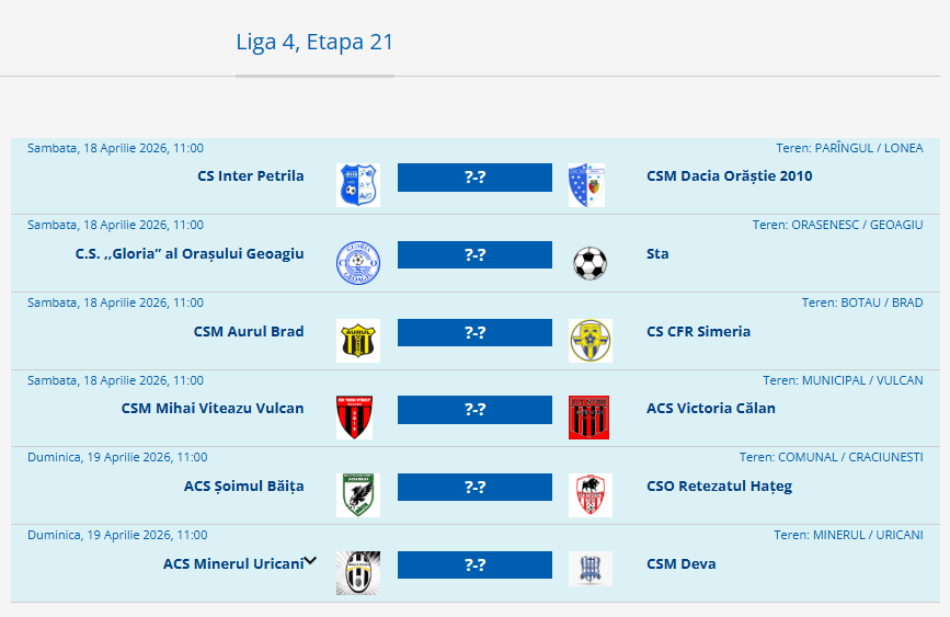 PROGRAM LIGA 4, ETAPA 21