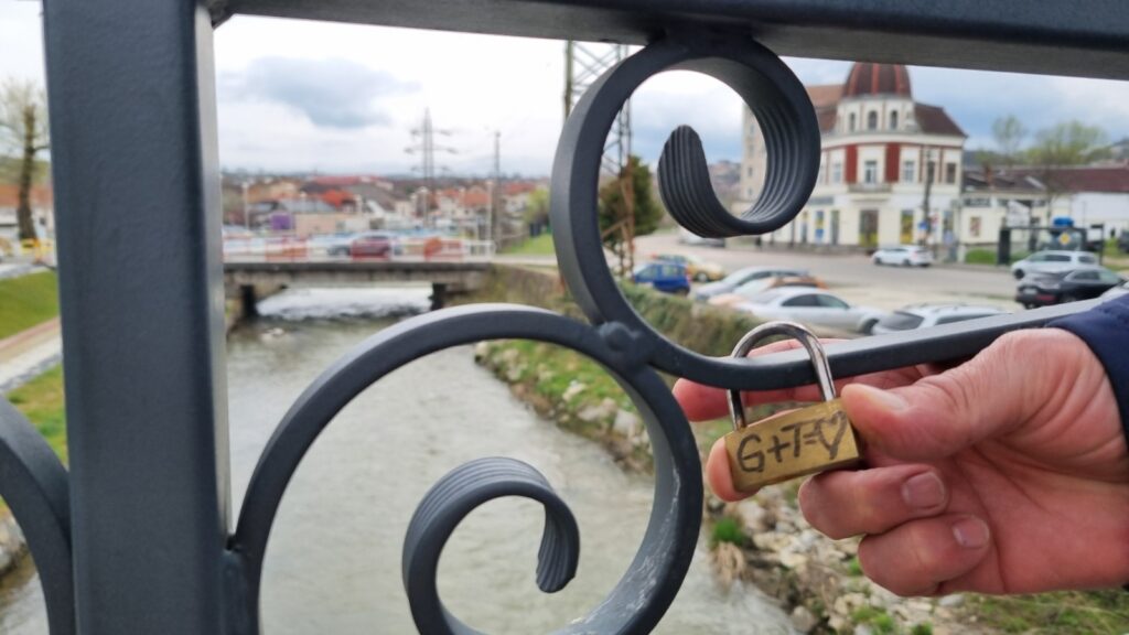 În ultima vreme, pe balustradele punţii pietonale peste râul Cerna, au început să apară lacăte personalizate puse de îndrăgostiţi. Majoritatea au inscripţionate şi nume sau iniţiale.