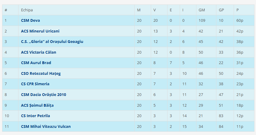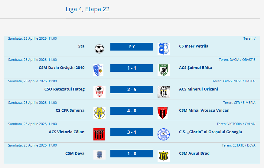 REZULTATE ȘI CLASAMENT LIGA A IV-A