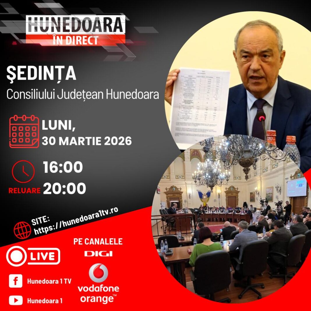 ȘEDINȚA CONSILIULUI JUDEȚEAN HUNEDOARA la „HUNEDOARA ÎN DIRECT”, ASTĂZI, 30 MARTIE 2026, de la ora 16:00 și în reluare de la ora 20:00.