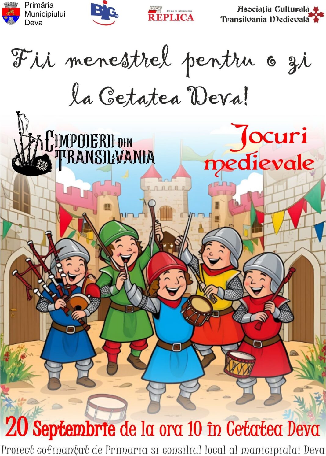 Primăria Municipiului Deva și Asociația Culturală Transilvania Medievală vă invită sâmbătă, 20 septembrie 2025, începând cu ora 10:00, la un eveniment deosebit, dedicat întregii familii – parte a proiectului „Fii menestrel pentru o zi în Cetatea Deva!”.