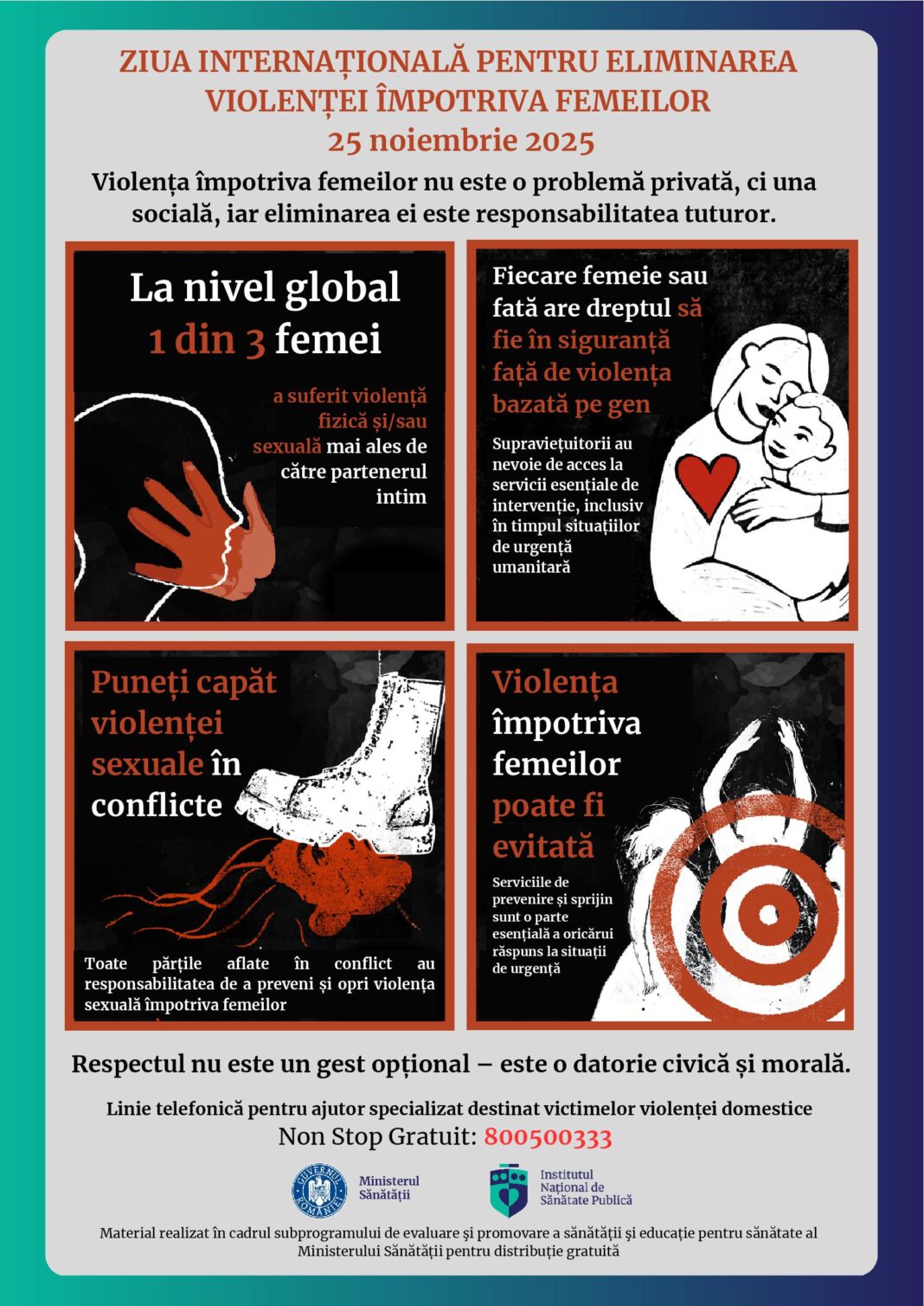 ASTĂZI, 25 NOIEMBRIE, S-A DAT STARTUL CAMPANIEI NAȚIONALE „16 ZILE DE ACTIVISM ÎMPOTRIVA VIOLENȚEI ÎN BAZĂ DE GEN”